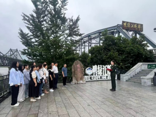 8月21日,实践团队先后探访了鸭绿江断桥与抗美援朝纪念馆。站在断桥上,江风拂面,桥体弹痕历历在目,仿佛诉说着浴血奋战的岁月。在纪念馆内,“最可爱的人”的英雄事迹震撼人心。在鸭绿江畔,刘婧婷同学结合自身部队经历,以抗美援朝战争为切入点,讲述了一堂生动的思政课——《断桥铭忠骨,英烈魂永铸》。中国人民志愿军用血肉之躯筑成了保家卫国的钢铁长城,我们更应从抗美援朝战争中汲取思想伟力,激发前进动力,为实现中华民族伟大复兴的中国梦贡献青春力量。