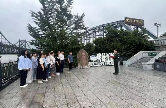 随后,师生们来到鸭绿江断桥。漫步在这座原本连接两岸的断桥之上,师生们驻足凝视,想象着当年志愿军战士们雄赳赳、气昂昂地奔赴战场的壮观场面。24级本科生刘婧婷在鸭绿江畔,结合自身在中国人民解放军仪仗司礼大队服役的经历,以抗美援朝战争为切入点,讲述了一堂生动的思政课——《断桥铭忠骨,英烈魂永铸》。她讲述到:山河无恙,英雄可归矣,中国人民志愿军用血肉之躯筑成了保家卫国的钢铁长城,我们更应该从抗美援朝战争中汲取思想伟力,激发前进动力,为实现中华民族伟大复兴的中国梦贡献青春力量。