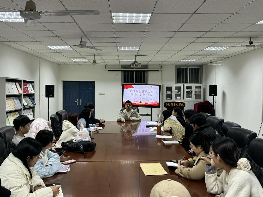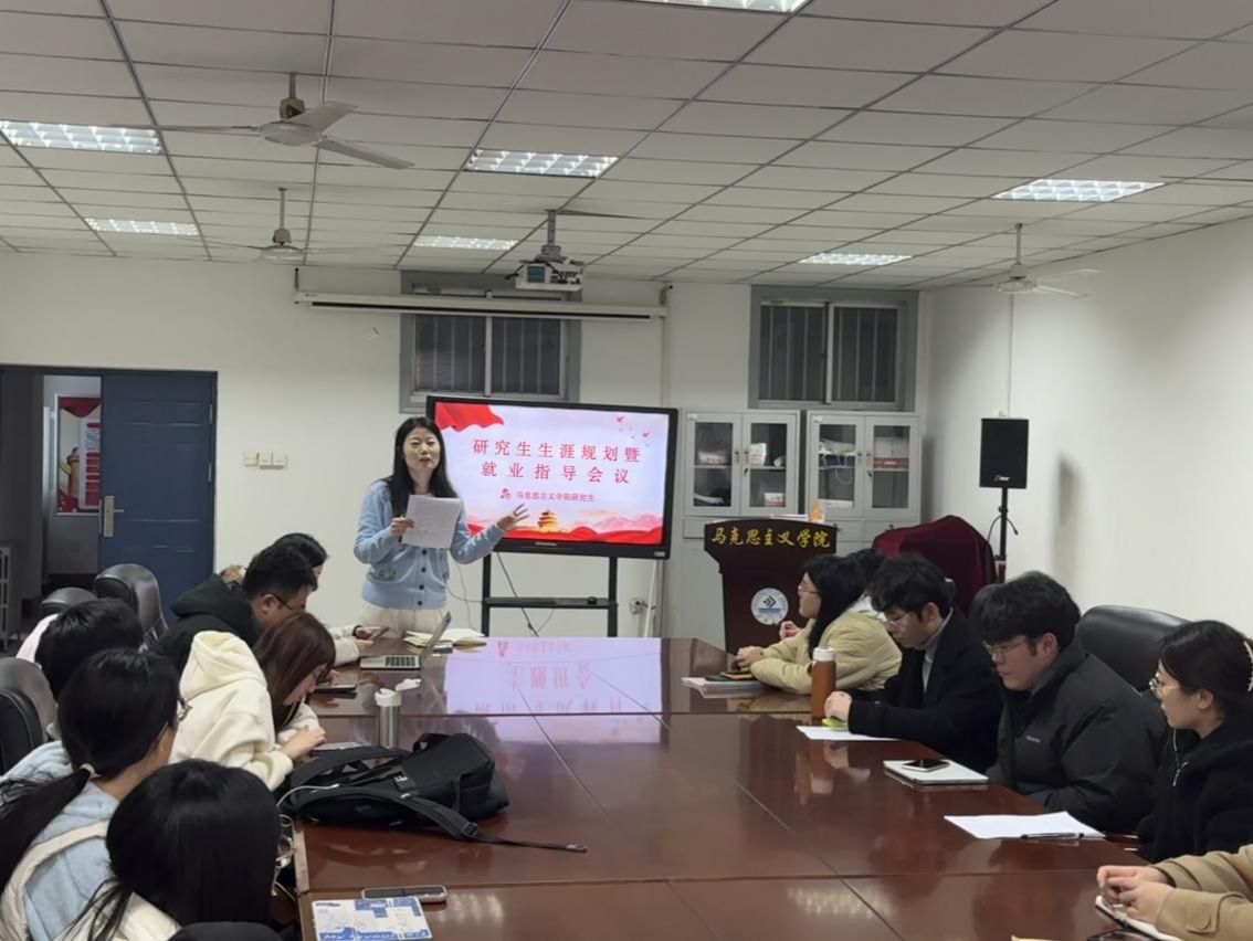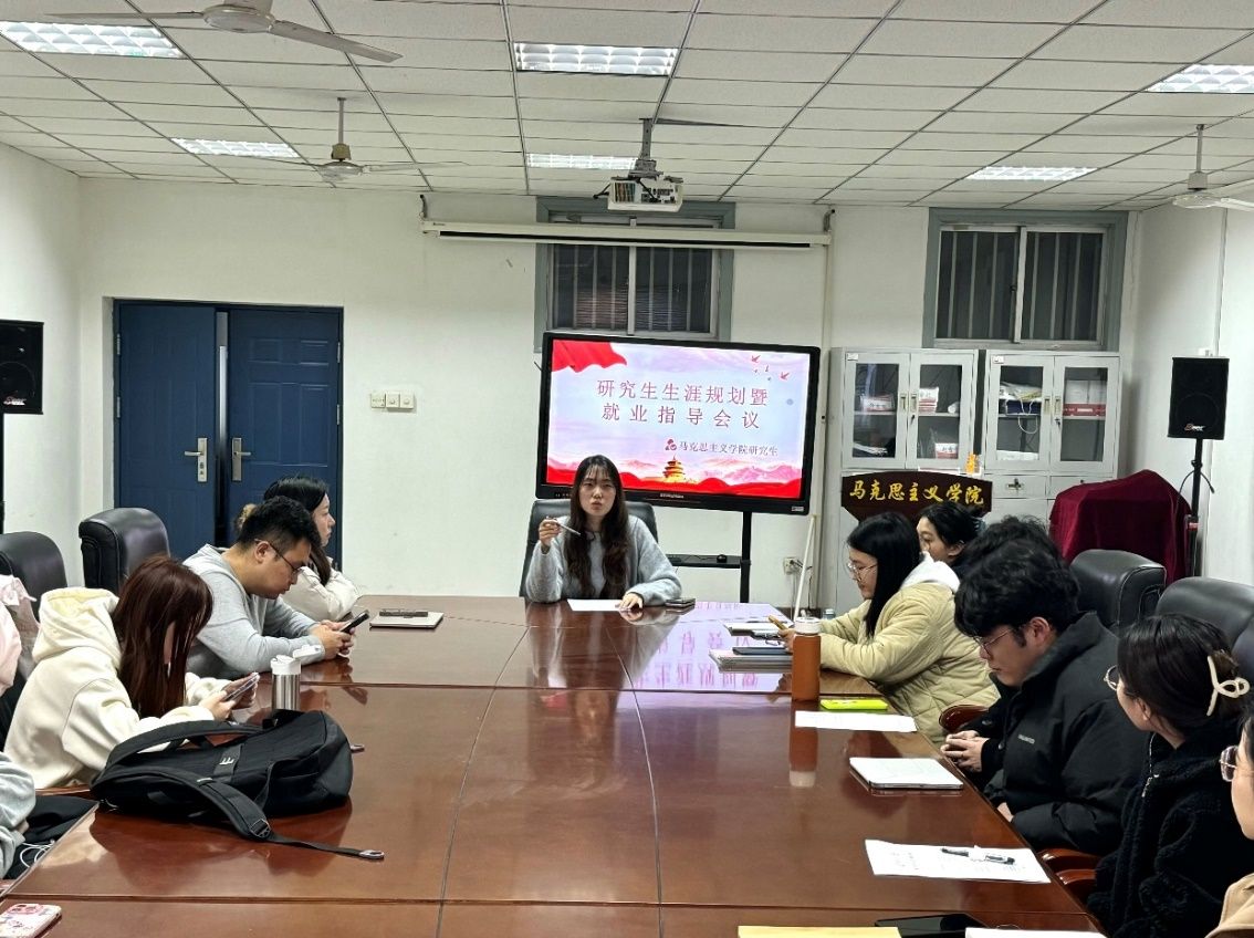 举办研究生生涯规划暨就业指导交流会。本次会议由学院学生工作办公室主任朱志乐主持,2025级辅导员陈丹丹老师及学院优秀校友赵磊、王懋林,为毕业生带来兼具理论深度与实战价值的就业指导分享。