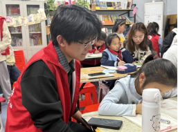 活动现场,志愿者们化身“暖心辅导员”,面对面地为孩子们答疑解惑。针对孩子们在作业中遇到的困惑,志愿者们耐心讲解,引导孩子们主动思考,帮助他们从多个角度探索解题思路,并及时解决课业问题。完成课业辅导后,志愿者们陪伴孩子们阅读课外书籍,并为孩子们提供合适的学习方法。通过这些举措,志愿者们为孩子们打造了一个温馨、充实的课后学习空间,让“四点半课堂”成为孩子们收获知识、快乐成长的美好时光。